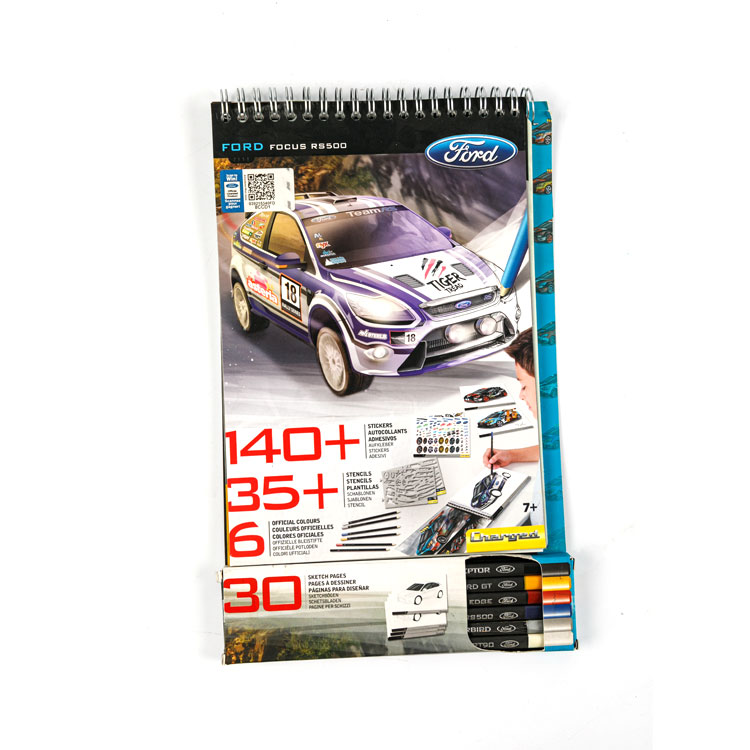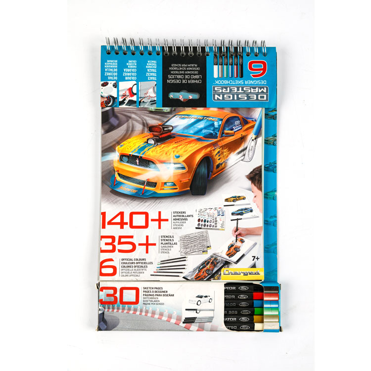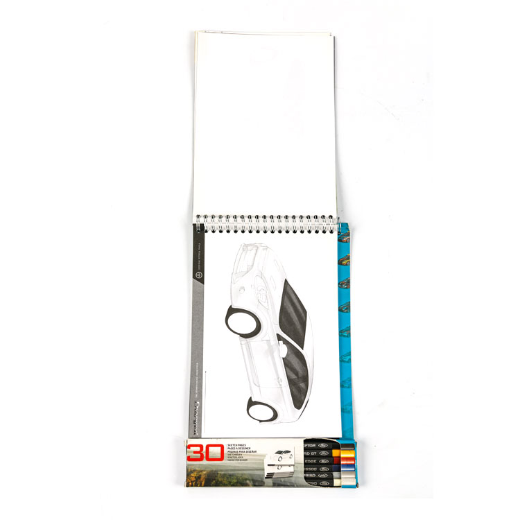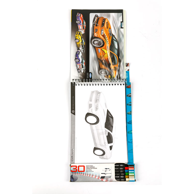 Sketch Book-Top Spiral Book Cool Racing Car တွင် သယ်ဆောင်ရအဆင်ပြေစေမည့် elastic band ပါရှိသည်။